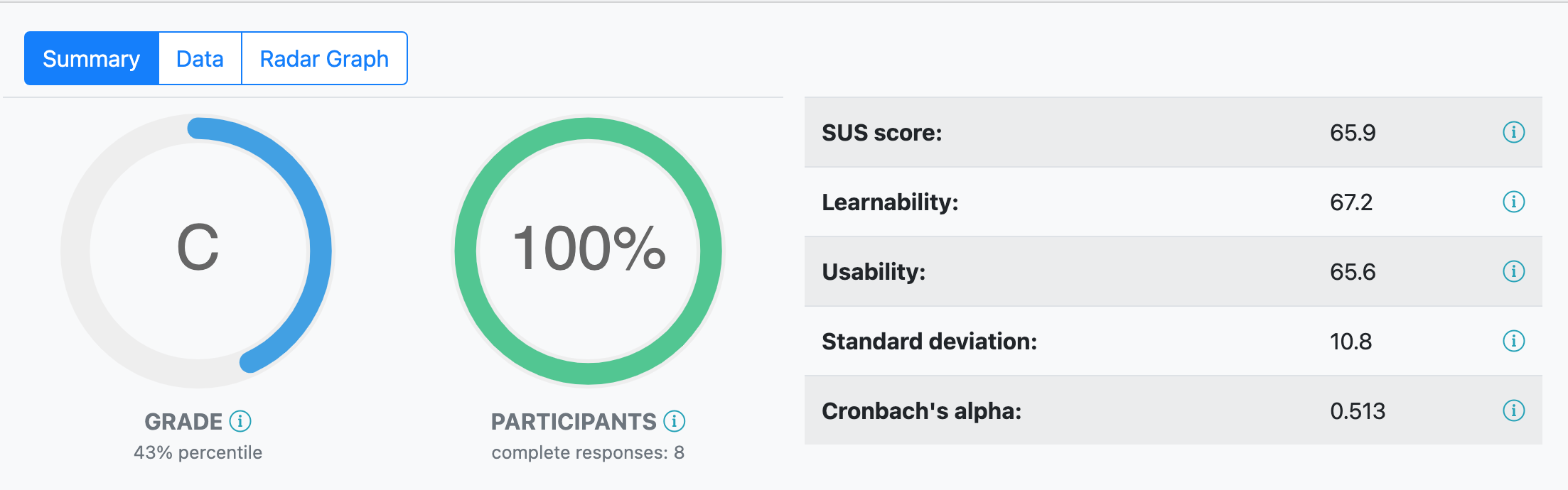 The industry benchmark for SUS is 68, meaning this score falls slightly below average for perceived usability.