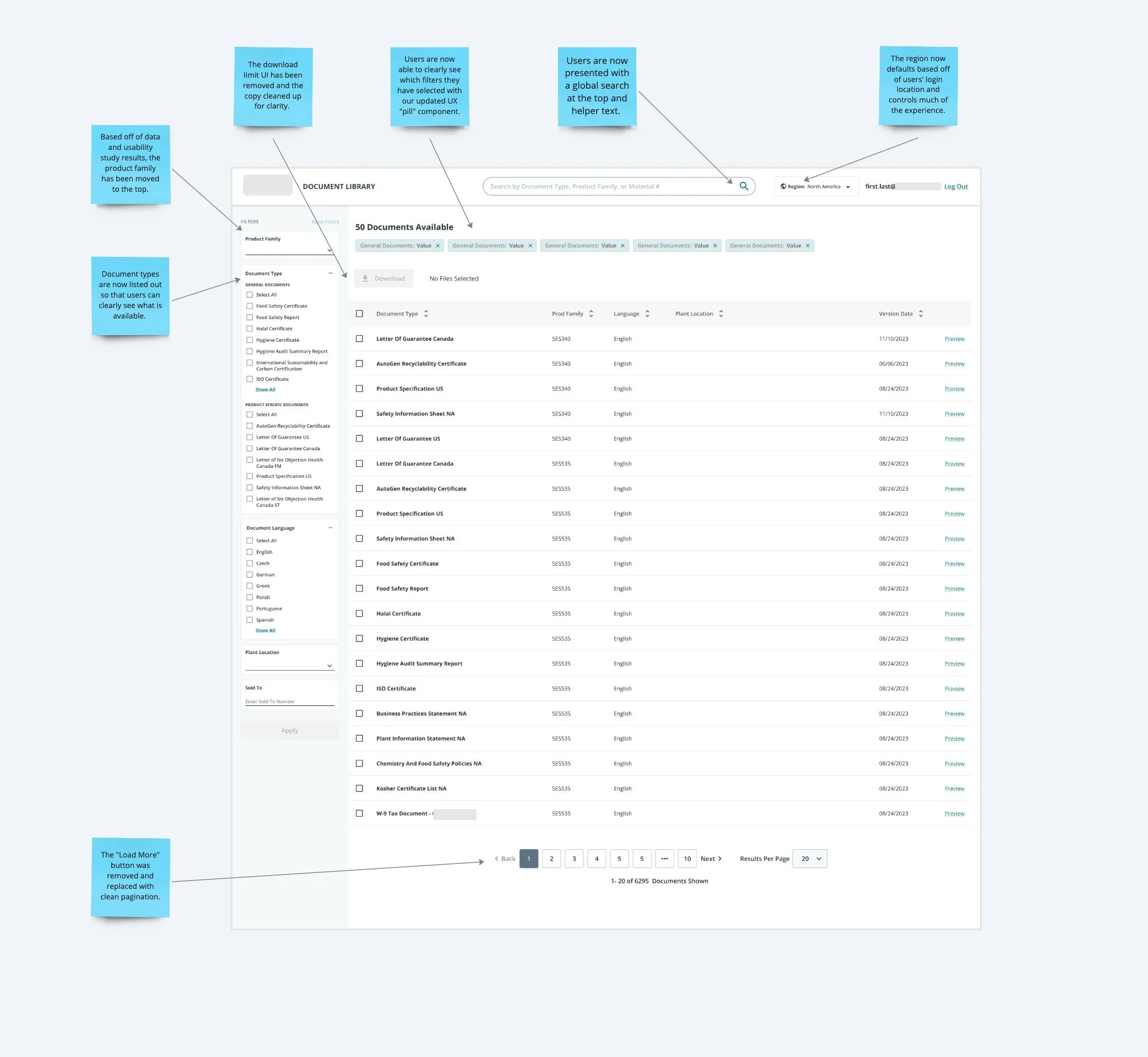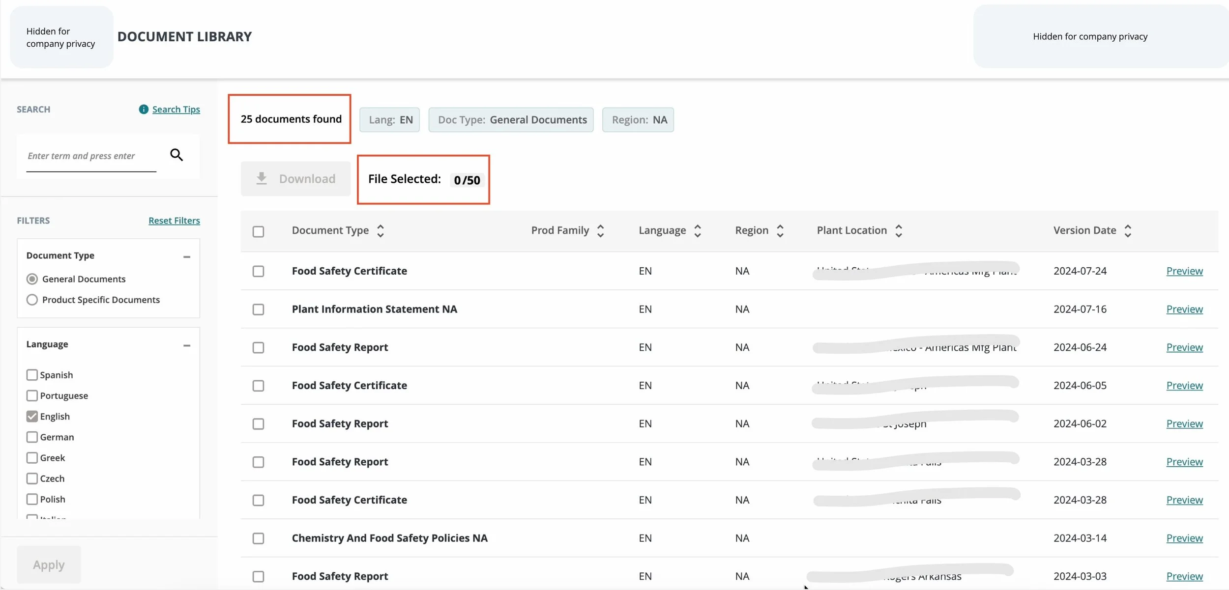 Plant Location Filter: The "Plant Location" filter, which was only relevant for "General Documents," also appeared for "Product Specific Documents," causing unnecessary confusion.